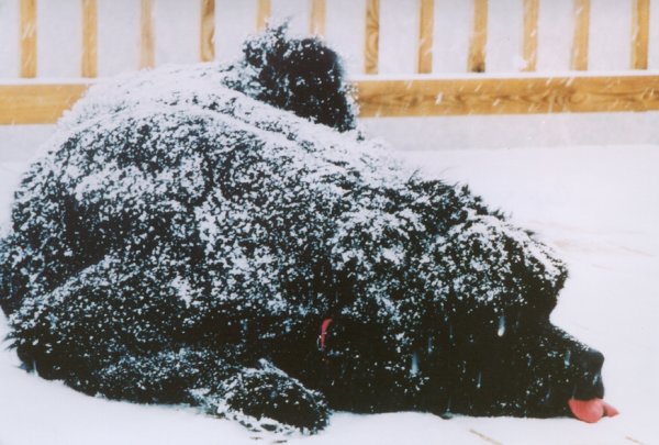 Newfies love the snow "Casey" |